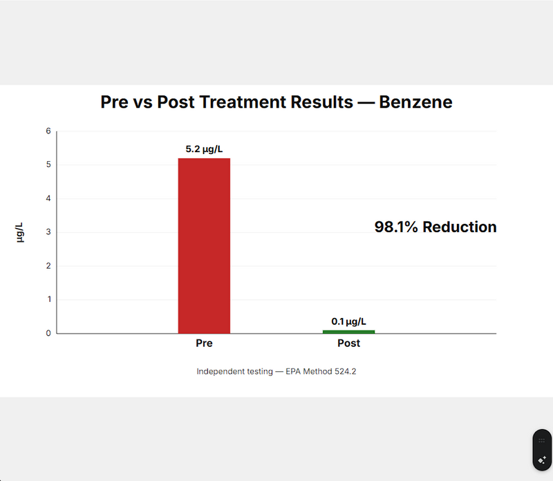 | Benzene | 5.2 μg/L | 0.1 μg/L | 98.1% | EPA 524.2 |
