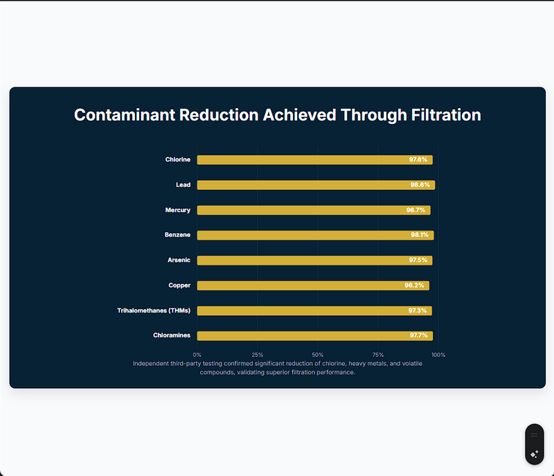 - Superior Efficacy: Filtration reduced chlorine by 97.6% and lead by 98.6%, leading to stronger scalp barrier function and healthier hair. [5]