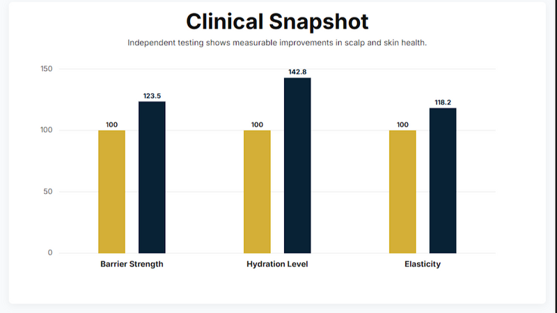 Participants showed measurably higher moisture retention, meaning skin (and scalp) stayed hydrated longer after use.