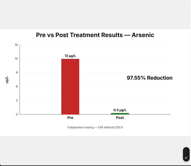 | Lead | 150 μg/L | 2.1 μg/L | 98.6% | EPA 200.8 |